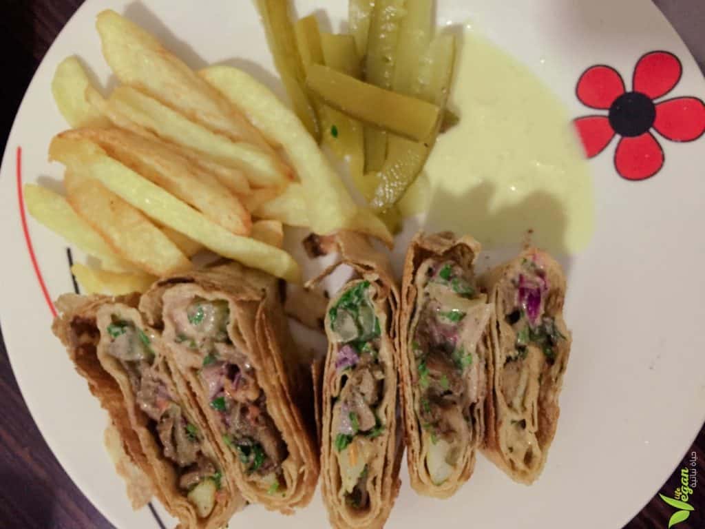 طريقة تحضير الشاورما النباتي من بروتين الصويا مع صوص الطحينة