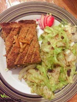 نسلق بروتين الصويا الناعم بمرق الخضار لمدة ١٠ دقائق ونعصره من الماء