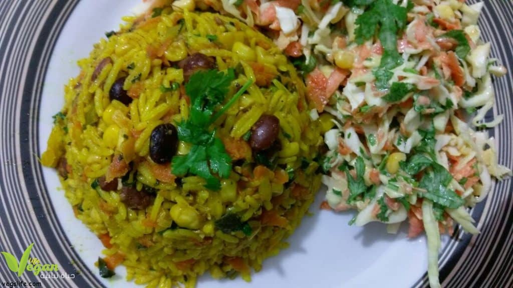 طريقة تحضير الارز مع الخضرا وسلطة ملفوف مع الكزبرة